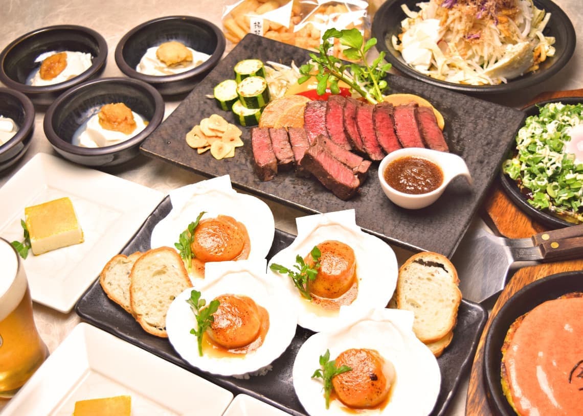 無農薬野菜や熟成肉など、食材にこだわる当店。本格鉄板料理を熟練したスタッフがお客様の前で丁寧に仕上げます。